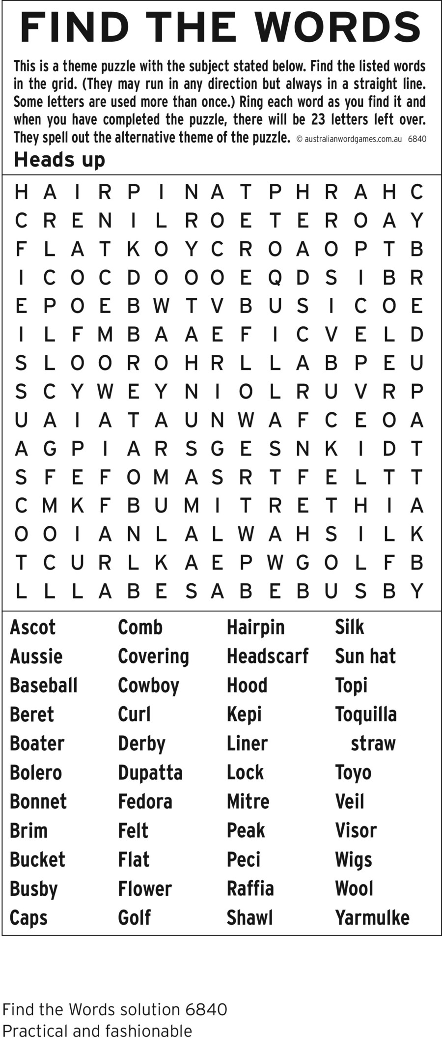 A daily wordfind with a new subject for each puzzle. Circle each word as you find it listed in the grid. Words may run in any direction, but will always be in a straight line. Keep in mind that one letter may be use multiple times.