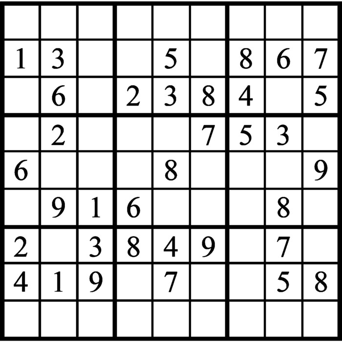 Challenge yourself with Janric's Classic Sudoku puzzle! Insert numbers 1 - 9 in each box with every row, column and 3x3 box containing the digits just once.